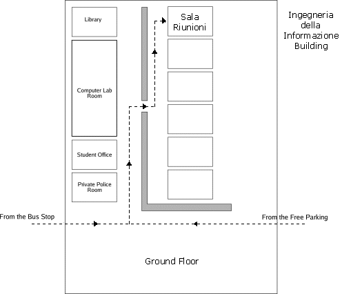 la scalinata e proseguendo dritti, l'edificio di Ingegneria dell'Informazione