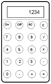 Se l'utente preme una cifra (escluso lo 0) tale valore è vine visualizzato sul display; premiamo un altro numero, questo viene accodato al valore precedentemente immesso (come se moltiplicassimo ciascuno valore per una potenza di 10: infatti questa propietà vale anche se premiamo due volte 0: 0+(0*10)=0.