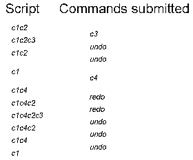 Se si esegue il comando c3 e poi si vuole togliere, si potragrave; utilizzare un UNDO e si ritornerà "come se " la sequenza fosse c1 c2. Abbiamo utilizzato il "come se" in quanto la sequenza reale è: