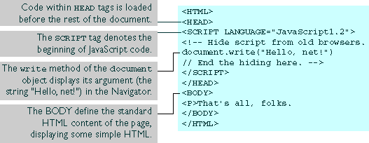 <SCRIPT>Since browsers typically ignore unknown tags, non-JavaScript-capable browsers will ignore the beginning and ending